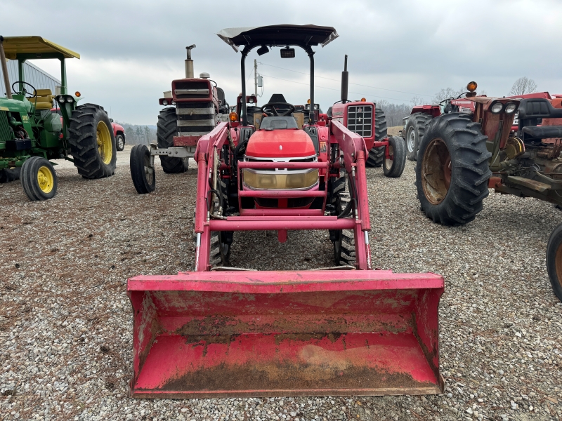 | SPECS: | 28 hp, diesel, 22 PTO hp, Mahindra ML111 loader SN#061130293, 5' bucket, ROPS w/canopy, 15X19.5 (50%) rear tires, good condition, no drawbar, no toplink, no lift arms |